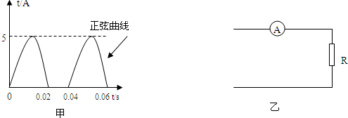 3、填空题 如图甲所示的电流通过图乙的电阻R,则交变电流表的示数为______A.