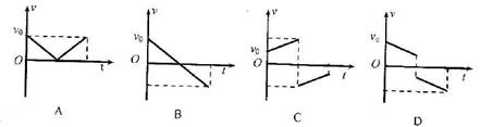 4、选择题 某人将小球以初速度v0竖直向下抛出,经过一段时间小球与地面碰撞,然后向上弹回。以抛出点为原点,竖直向下为正方向,小球与地面碰撞时间极短,碰后立即以原速率弹回,不计空气阻力,则下列图像中能正确描述小球从抛出到弹回的整个过程中速度v随时间t的变化规律的是