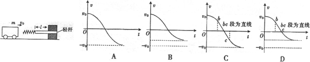3、选择题 某缓冲装置的理想模型如图所示,劲度系数足够大的轻质弹簧与轻杆相连,轻杆可在固定的槽内移动,与槽间的滑动摩擦力为定值。轻杆向右移动不超过l时,装置可安全工作。若一小车以速度v0撞击弹簧,已知装置可安全工作,轻杆与槽间的最大静摩擦力等于滑动摩擦力,且不计小车与地面间的摩擦。从小车与弹簧刚接触时开始计时,下列关于小车运动的速度-时间图象可能正确的是(? )