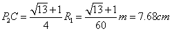 再次进入磁场B1区域时做以O3为圆心,半径仍为R1的匀速圆周运动,即Q2P2段,最后从P2点射出磁场区域。在△P2CO3中,根据数学知识,有CO3=0.5R1,线段P2C长度为: