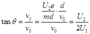 速度方向偏转角设为 , 打到荧光屏的位置距O点的距离 ?⑧ 可得? 由 可知,改变加速电压U1或偏转电压U2的大小,即可改变电子打到荧光屏的的位置: 方案一:保持U1的大小不变,将偏转电压U2加倍即可。 方案二:保持U2的大小不变,将加速电压U1减半即可。
