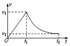 4、选择题 在军事演习中,某空降兵从飞机上跳下,先做自由落体运动,在t1时刻,速度达较大值v1时打开降落伞,做减速运动,在t2时刻以较小速度v2着地。他的速度图象如图所示。下列关于该空降兵在0~t1或t1~t2时间内的的平均速度的结论正确的是