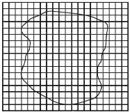 2、简答题 在做“用油膜法估测分子的大小”的实验中,所用酒精油酸溶液的浓度为每104?mL溶液中有纯油酸6mL,用注射器测得1mL上述溶液为75滴.把1滴该溶液滴入盛水的浅盘里,待水面稳定后,将玻璃板放在浅盘上,用笔在玻璃板上描出油酸的轮廓形状,再把玻璃板放在坐标纸上,其形状如图所示,坐标中正方形方格的边长为1cm.试求: