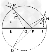参考答案:垂直射入ac面的白光在ab面已发生全反射,若入射光逆时针旋转,则光在ab面上仍会发生全反射,不会射出,CD错误; 本题解析: 本题难度:简单 3、计算题  如图所示,是用某种玻璃制成的横截面为圆形的圆柱体光学器件,它的折射率为 ,横截面半径为R。现用一细光束(视为光线)垂直圆柱体的轴线以i=60°的入射角射入圆柱体,不考虑光线在圆柱体内的反射,真空中光速为c。 参考答案:①见解析   ② 本题解析:①由折射定律 本题难度:一般 4、计算题  一半圆柱形透明物体横截面如图所示,地面AOB镀银,O表示半圆截面的圆心,一束光线在横截面内从M点入射,经过AB面反射后从N点射出。已知光线在M点的入射角为30°,∠MOA=60°,∠NOB=30°。求 参考答案:解:(1)如图,透明物体内部的光路为折线MPN,Q、M点相对于底面EF对称,Q、P和N三点共线 本题解析: 本题难度:一般 5、选择题  如图所示,在空气中,一细光束以60°的入射角射到一平行玻璃板的上表面ab上,已知该玻璃的折射率为