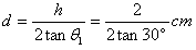 (2)设第一次折射时折射角为θ1,则有 解得θ1=30° 设第二次折射时折射角为θ2,则有 解得θ2=45° 由几何关系得h=2dtanθ1?
