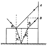 4、选择题 如图所示,上下表面平行的玻璃砖折射率为 ,下表面镶有银反射面,一束单色光与界面的夹角θ= 45°射到玻璃表面上,结果在玻璃砖右边竖直光屏上出现相距h=2.0 cm的光点A和B。(图中未画出A,B) (1)请在图中画出光路示意图; (2)求玻璃砖的厚度d。