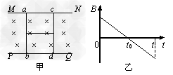 5、选择题  水平面上的光滑平行导轨MN、PQ上放着光滑导体棒ab、cd,两棒用细线系住,开始时匀强磁场的方向如图甲所示,而磁感应强度B随时间t的变化如图乙所示,不计ab、cd间电流的相互作用,则细线中张力