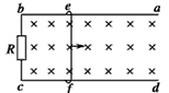3、选择题  如图所示,在一均匀磁场中有一U形导线框abcd,线框处于水平面内,磁场与线框平面垂直,R为一电阻,ef为垂直于ab的一根导体杆,它可在ab、cd上无摩擦地滑动。杆ef及线框中导线的电阻都可不计。开始时,给ef一个向右的初速度,则
