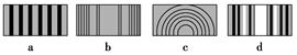本题解析:a图是双缝干涉图样,b图是单缝衍射图样,c是小孔衍射图样,d是单缝衍射图样,故D正确.