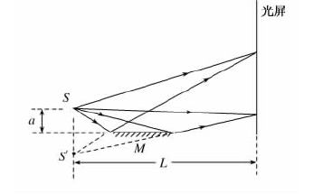 (1)洛埃镜实验的基本装置如图所示,S为单色光源,M为一平面镜. 试用平面镜成像作图法画出S经平面镜反射后的光与直接发出的光在光屏上相交的区域.