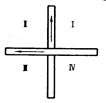 4、选择题 如图所示,两根非常靠近且互相垂直的长直导线,当通以如图所示方向的电流时,电流所产生的磁场在导线所在平面内的哪个区域内方向是一致且向里的