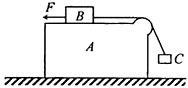 5、简答题 水平面上有一带圆弧形凸起的长方形木块A,木块A上的物体B用绕过凸起的轻绳与物体C相连,B与凸起之间的绳是水平的。用一水平向左的拉力F作用在物体B上,恰使物体A、B、C保持相对静止,如图。己知物体A、B、C的质量均为m,重力加速度为g,不计所有的摩擦,则拉力F应为多大?