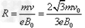 (3)在磁场变化的半个周期内粒子的偏转角为60°(如图)所以,在磁场变化的半个周期内,粒子在x轴方向上的位移等于R。粒子到达N点而且速度符合要求的空间条件是: