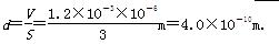 ②油酸分子直径为 d=VS=4×10-6×10-68×10-3m=5×10-10m