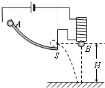 1、简答题 如图所示,在研究平抛运动时,小球A沿轨道滑下,离开轨道末端(末端水平)时撞开轻质接触式开关S,被电磁铁吸住的小球B同时自由下落.改变整个装置的高度H做同样的实验,发现位于同一高度的A、B两球总是同时落地