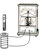 4、填空题 一灵敏电流计(电流表),当电流从它的正接线柱流入时,指针向正接线柱一侧偏转.现把它与一个线圈串联,试就如图中各图指出: