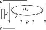 3、实验题 如图所示金属圆盘可绕O轴转动,电阻R用电刷接于圆盘中心和边缘之间,当圆盘从上向下看做顺时针方向转动时,通过R的电流方向是__________.