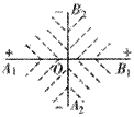 1、选择题 理论研究表明,无限大的均匀带电平面在周围空间会形成与平面垂直的匀强电场。现有两块无限大的均匀绝缘带电平面,一块两面正电,一块两面负电,把它们正交放置如图所示,单位面积所带电荷量相等(设电荷在相互作用时不移动),图中直线A1B1和A2B2分别为带正电平面和带负电平面与纸面正交的交线,O为两交线的交点,则下图中能正确反映等势面分布情况的是