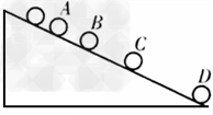 5、计算题  如图所示,有若干相同的小球,从斜面上的某一位置每隔0.1 s无初速度地释放一颗,在连续释放若干钢球后,对准斜面上正在滚动的若干小球拍摄到如图所示的照片,测得AB=15 cm,BC=20 cm。求: