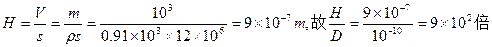 本题解析:(1)解:设油膜的厚度为H,分子直径的数量级D=10-10m,则