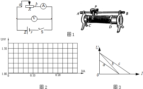 (4)在同一坐标系中画出了a、b、c三个电源的U-I?图线3,电源电动势分别为?Ea、Eb、Ec,内电阻