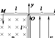 4、简答题 如图所示,在x<0且y<0的区域内存在垂直纸面向里的匀强磁场,磁感应强度大小为B,在x>且y<0的区域内存在沿y轴正方向的匀强电场。一质量为m、电荷量为q的带电粒子从x轴上的M点沿y轴负方向垂直射入磁场,结果带电粒子从y轴的N点射出磁场而进入匀强电场,经电场偏转后打到x轴上的P点,已知