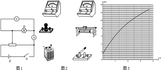③根据实验数据,计算并描绘出R-U的图象如图3所示.由图象可知,此灯泡在不工作时,灯丝电阻为______;当所加电压为3.00V时,灯丝电阻为______,灯泡实际消耗的电功率______W(保留2位小数).
