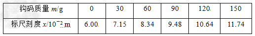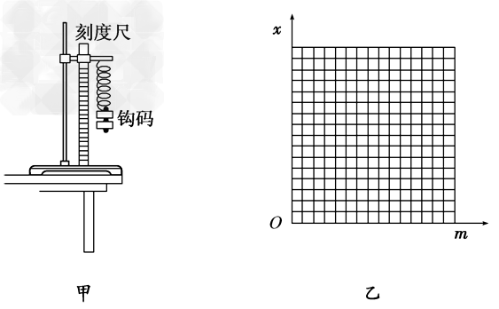 (1)根据所测数据,在图乙所示的坐标纸上作出弹簧指针所指标尺刻度x与钩码质量m的关系曲线。