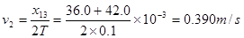 1、实验题 电磁打点计时器是一种使用低压交流电源的计时仪器。打点计时器的频率为50Hz。某次用打点计时器研究小车运动的实验中得到一条纸带如图所示,从比较清晰的0点起,每五个打印点取为一个计数点,分别标明0、l、2、3、4……,量得0与1两点间距离x1=30.0mm,1与2两点间距离x2=36.0mm,2与3两点间距离x3=42.0mm,3与4两点间的距离x4=48.0mm,则小车在打计数点2时的瞬时速度为__m/s,小车的加速度为___m/s2。