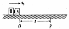 4、计算题 如图所示,可视为质点的小木块A、B的质量均为m,放在一段粗糙程度相同的水平地面上,木块A、B间夹有一小块炸药(炸药的质量可以忽略不计).让A、B以初速度v0一起从O点滑出,滑行一段距离后到达P点,速度变为v0/2,此时炸药爆炸使木块A、B脱离,发现木块B立即停在原位置,木块A继续沿水平方向前进,己知O、P两点间的距离为s,炸药爆炸时释放的化学能均全部转化为木块的动能,爆炸时间很短可以忽略不计,求: