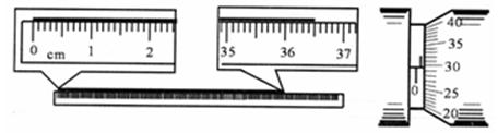 (2)若实验中测量金属丝的长度和直径时,刻度尺和螺旋测微器的示数分别如图所示,则金属丝长度的测量值为l=?cm,金属丝直径的测量值为d=?mm。