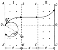 (1)若速度小于某一值时粒子不能从BB′离开区域I,只能从AA′边离开区域I.则无论粒子速度大小,在区域I中运动的时间相同.轨迹如图所示(图中只画了一个粒子的轨迹).则粒子在区域I内做圆周运动的圆心角为φ=300°,