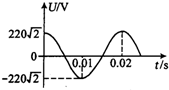 D.若将此交流电接在原、副线圈匝数比为10:1的变压器的原线圈上,则接在副线圈两端的交流电压表的示数为2200V