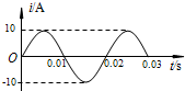 参考答案:根据图象可知该交流电的电流最大值是Im=10V,周期T=0.02s,故B正确,ACD错误.