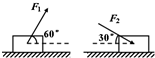 5、选择题 如图所示,一物块置于水平地面上.当用与水平方向成60°的力F1拉物块时,物块做匀速直线运动;当改用与水平方向成30°的力F2推物块时,物块仍做匀速直线运动.若F1和F2的大小相等,则物块与地面之间的动摩擦因数为( )