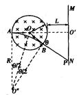 4、计算题 圆心为O、半径为r的圆形区域中有一个磁感应强度为B、方向垂直于纸面向里的匀强磁场,与区域边缘的最短距离为L的