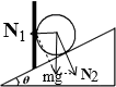 ![]() 参考答案:A、B保持K闭合,电容器的电压不变,A板向B板靠近,板间距离变小,引起电场强度E=Ud变大,小球受的电场力F=qE变大,则θ变大.故A正确,B错误. 本题解析: 本题难度:简单 3、简答题 如图所示,将一光滑球放在挡板和斜面之间,球重力为G,斜面倾角为θ.试求挡板和斜面对小球的支持力. 参考答案:物体与斜面和挡板接触,物体对斜面有垂直斜面向下的压力,对于挡板物体有垂直于挡板即水平的压力,所以按照重力产生的作用效果重力可分解为垂直于斜面的分力和水平方向的分力,以重力为对角线作出平行四边形可知,小球静止时对斜面的压力为N2=Gcosθ,小球静止时对挡板的压力为N1=mgtanθ; 本题解析: 本题难度:一般 4、选择题 如图所示,用平行于斜面体A斜面的轻弹簧将物块P拴接在挡板B上,在物块P上施加沿斜面向上的推力F,整个系统处于静止状态。下列说法正确的是:( ) 参考答案:C 本题解析:物块P与斜面之间有无摩擦力将无法确定,选项A错误;弹簧的弹力可能沿斜面向上也可能向下,选项B错误;对斜面和物块的整体而言,F对P的作用力沿斜面向上,故地面对斜面体A的摩擦力水平向左,选项C 正确;因为弹簧可能处于压缩状态,故若增大推力,则弹簧弹力可能增大,选项D错误。 本题难度:一般 5、选择题 如图所示,用两根细线把A、B两小球悬挂在天花板上的同一点O,并用第三根细线连接A、B两小球,然后用某个力F作用在小球A上,使三根细线均处于直线状态,且OB细线恰好沿竖直方向,两小球均处于静止状态。则该力可能为图中的 参考答案:BC 本题解析: 本题难度:一般 |