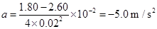 。在布面上,小车做匀减速直线运动,对应于纸带上的FJ段,HF="2.60" cm,AF="1.80" cm,加速度为