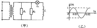 ![]() 参考答案:六盏灯泡恰好都能正常发光,设灯泡的电压为U,电流为I,则上面一个副线圈的电压为U, 本题解析: 本题难度:一般 2、选择题 如图甲所示,理想变压器原、副线圈的匝数比为10:1,R1=20Ω,R2=30Ω,L为无直流电阻的电感线圈。已知通过R1的正弦交流电流如图乙所示 ,则 参考答案:CD 本题解析: 本题难度:一般 3、选择题 如图所示,理想变压器副线圈通过输电线接两个相同的灯泡L1和L2,两灯泡单独或同时接入时均不会被烧毁,输电线的等效电阻为R。开始时,开关S闭合。则当S断开后