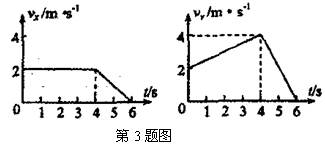 4、选择题  质量为0.2kg的物体,其速度在x、y方向的分量vx、vy,与时间t的关系如图所示,已知x、y方向相互垂直,则(?)