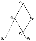 根据平行四边形法则,QC受的力F1即为FA、FB的合力,根据几何知识可知,QC受的力的大小:
