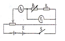 参考答案:(1)①不能多次测量,②超过电流表量程不安全,③电压表量程太大,读数误差较大. (2)①电流表量程太小,②电压表量程太大,③变阻器调节作用太小. (3)见下图,UV是电压表V1表示,IA是电流表A1示数,R0是电阻箱示数.
