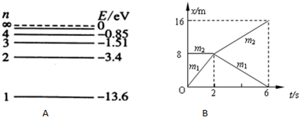 (2)质量为m1=1.0kg和m2(未知)的两个物体在光滑的水平面上正碰,碰撞时间不计,其x~t(位移-时间)图象如图B所示,试通过计算回答下列问题
