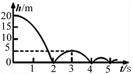 4、选择题 一定质量的小球自t=0时刻从水平地面上方某处自由下落,小球与地面碰后反向弹回,不计空气阻力,也不计小球与地面碰撞的时间,小球距地面的高度h与运动时间t关系如右图所示,取g=10m/s2。则下列说法正确的是(?)