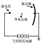 4、选择题 图为静电除尘机理的示意图,尘埃在电场申通过某种机制带电,在电场力的作用下向集尘极迁移并沉积,以达到除尘目的,下列表述正确的是(?)
