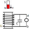 3、简答题 条形磁铁位于线圈L的正上方,N极朝下.灵敏电流计G、电容C与线圈L连成如图所示的电路.现使磁铁从静止开始加速下落,在N极接近线圈上端的过程中,流过G的电流方向和电容器极板的带电情况是______