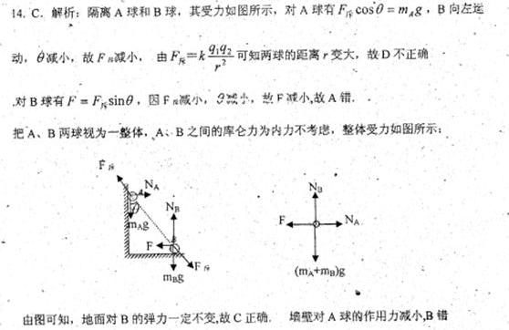 ![]() 参考答案:A、B三相交流发电机可以发出三相交变电流,当作三个独立的单相交流发电机,由于已知发电机的相电压为220V,它们可以分别单独向外传送三组单相交变电流,而三盏电阻不同的灯泡接入的电压都是单相电压,所以灯泡两端的电压都是220V.故A错误,B正确. 本题解析: 本题难度:简单 2、选择题  如右下图所示,竖直墙面与水平地面均光滑且绝缘,两个带有同种电荷的小球A、B分别处于竖直墙面和水平地面,且共处于同一竖直平面内,若用图示方向的水平推力F作用于小球B,则两球静止于图示位置,如果将小球B稍向左推过一些,两球重新平衡时的受力情况与原来相比(?) 参考答案:C 本题解析: 本题难度:简单 3、选择题  如图所示,在竖直墙壁的A点处有一根水平轻杆a,杆的左端有一个轻滑轮O.一根细线上端固定在该天花板的B点处,细线跨过滑轮O,下端系一个重为G的物体,开始时BO段细线与天花板的夹角为θ=30°.系统保持静止,当轻杆a缓慢向下移动的过程中,不计一切摩擦,下列说法中正确的是(? ) 参考答案:B 本题解析:细线BO对天花板的拉力大小等于物体重力,当轻杆a缓慢向下移动的过程中,,拉力大小不变,方向改变,选项A错误; 本题难度:简单 4、选择题  下列关于节约用电的做法,错误的是(  ) 参考答案:A、较长时间不使用计算机时,关闭显示屏,启用休眠状态,计算机消耗的电能减小.故A正确. 本题解析: 本题难度:简单 5、计算题  在电解液导电中,若在5s内分别有5C的正离子和5C的负离子通过电解槽中与电流方向垂直的截面,则电路中的电流是多少?若5s内有5C的正、负离子分别在阴极和阳极放电,则电路中的电流是多少?  参考答案:解:在电解液中,电流等于同一截面上正、负电荷迁移电荷量的绝对值之和与所用时间t之比,所以 本题解析: 本题难度:一般  |