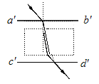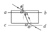 丙同学在操作和作图时均无失误,但所用玻璃砖的两面明显不平行如图,这时测得n值将?。