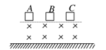 4、选择题 在平行于水平地面的有界匀强磁场上方有三个单匝线圈A、B、C,从同一高度由静止开始同时释放,磁感线始终与线圈平面垂直,三个线圈都是由相同的金属材料制成的正方形,A线圈有一个小缺口,B和C都闭合,但B的横截面积比C的大,如图所示,下列关于它们落地时间的判断,正确的是( )
