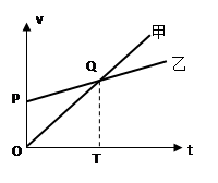 5、选择题 甲乙两车在一平直道路上同向运动,其v—t图像如图所示,图中⊿OPQ和⊿OQT的面积分别是S1和S2(S1>S2)。初始时,甲车在乙车前方S0处,下列说法正确的是:(?)